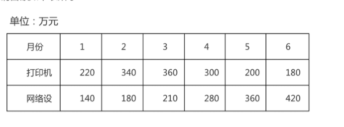 EK公司销售的主要产品有打印机、网络设备和耗材,2016年上半年的销售额如下表所示:单位:万元月份