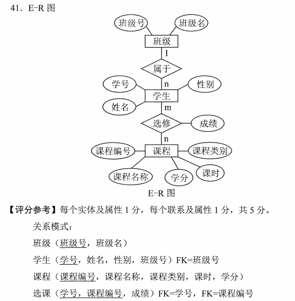 - 数据库及其应用(02120) - 专业知识收录平台">学校有多个班级,每个班级有多名学生,每名学生可以选修多门课程。学生成绩统计表如题表所示。据此画出E-R图,并转换为关系模式,标注主键和外键。