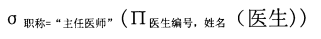 有表医生(医生编号,姓名,性别,科室号,职称,出诊时间),与SQL语句SELECT医生编号,姓名 FROM 医生 WHERE 职称=“主任医师”等价的关系代数表达式是