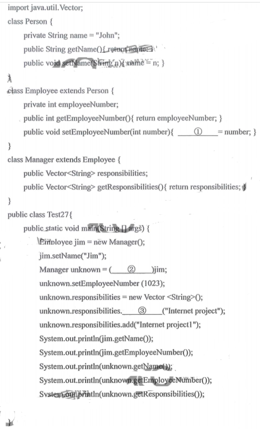 以下程序定义了父类Person、Person的子类Employee和Employee的子类Manager。