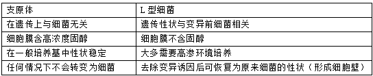支原体与细菌L型的区别(见下表)