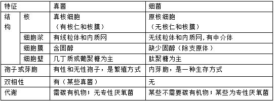 简述真菌与细菌特征的主要差异。