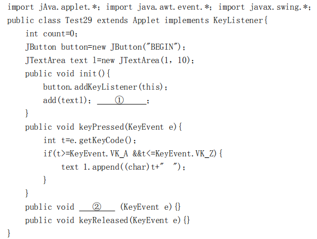 下一篇:某小应用程序有一个按钮和一个文本区,按钮作为发生键盘事件的事件源,并对它进行监视。程序运行时,先点击按钮,让按钮激活;从键盘输入英文字母时,在文本区显示输入的字母。